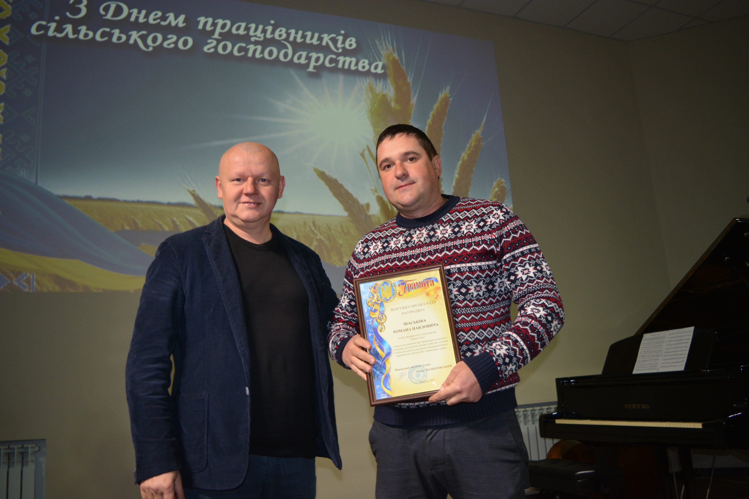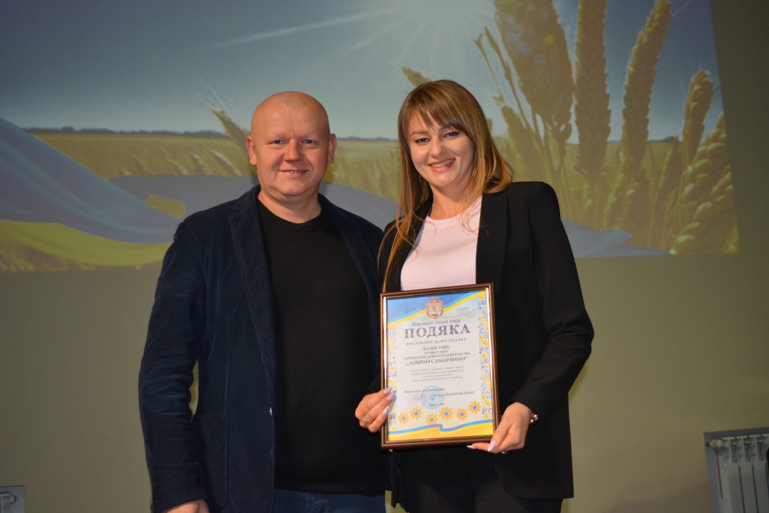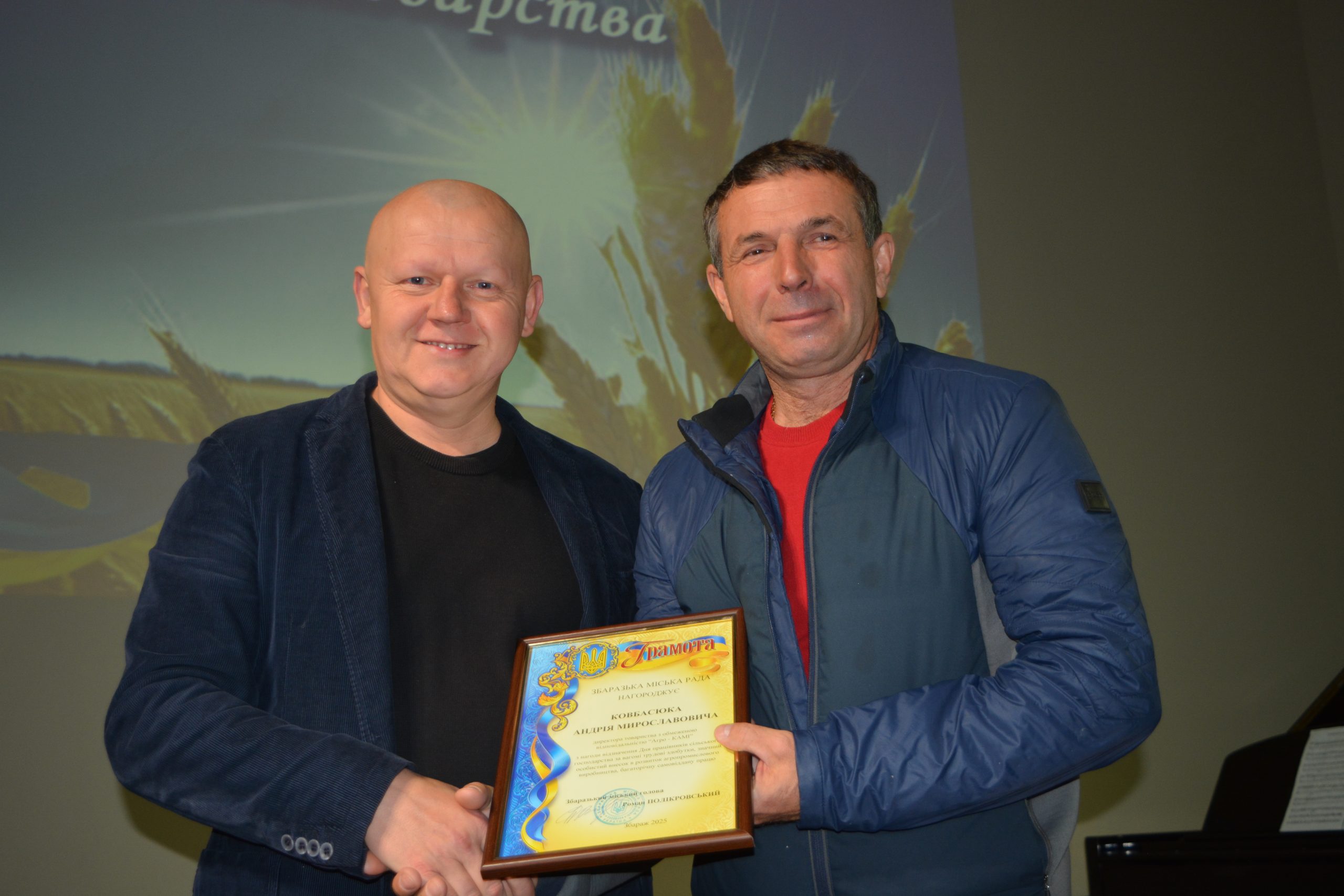 Збаразький міський голова Роман Полікровський привітав присутніх із прийдешнім святом – Днем працівників сільського господарства та щиро подякував аграріям за їхню самовіддану працю, відповідальність і внесок у розвиток громади. Він наголосив, що завдяки наполегливості та професіоналізму працівників сільського господарства забезпечується продовольча безпека, створюються робочі місця та зміцнюється добробут нашої території. Найкращим підприємствам і окремим працівникам галузі були вручені подяки та грамоти Збаразької міської ради за високі трудові досягнення, сумлінну працю та вагомий внесок у розвиток агропромислового комплексу громади