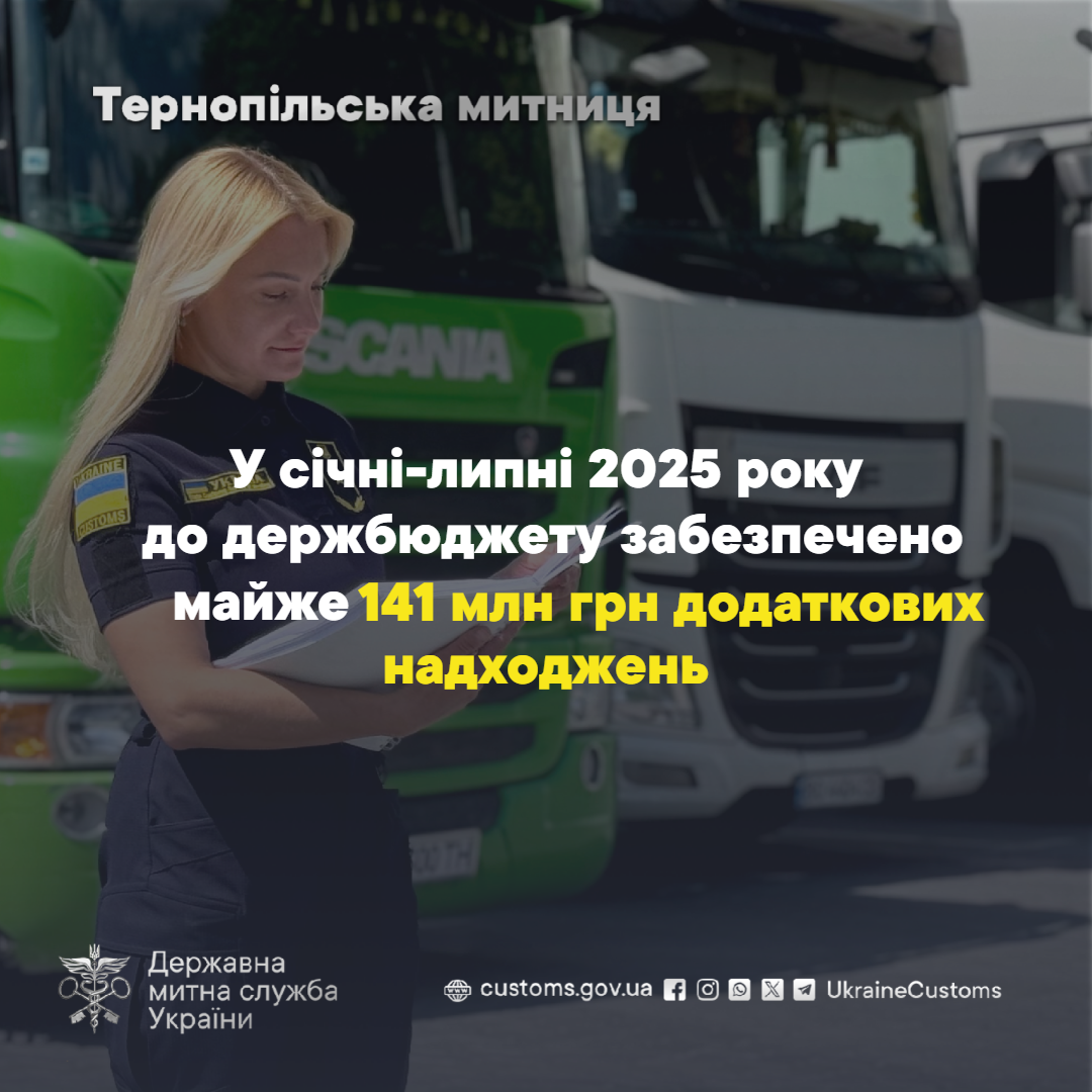 Ефективна робота працівників Тернопільської митниці в напрямку контролю за дотримання митних процедур дала змогу залучити додаткові кошти до державного бюджету – загалом, майже 141 млн гривень.