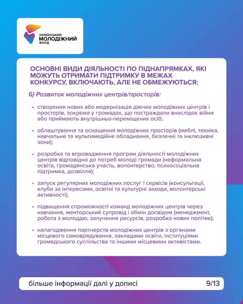 – молодіжні центри та простори.